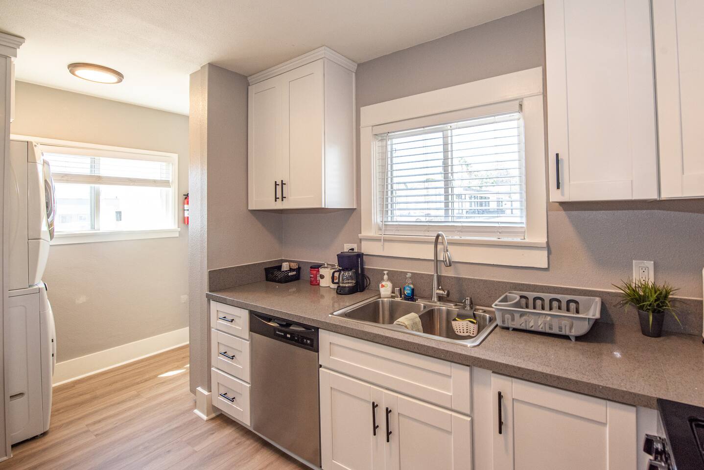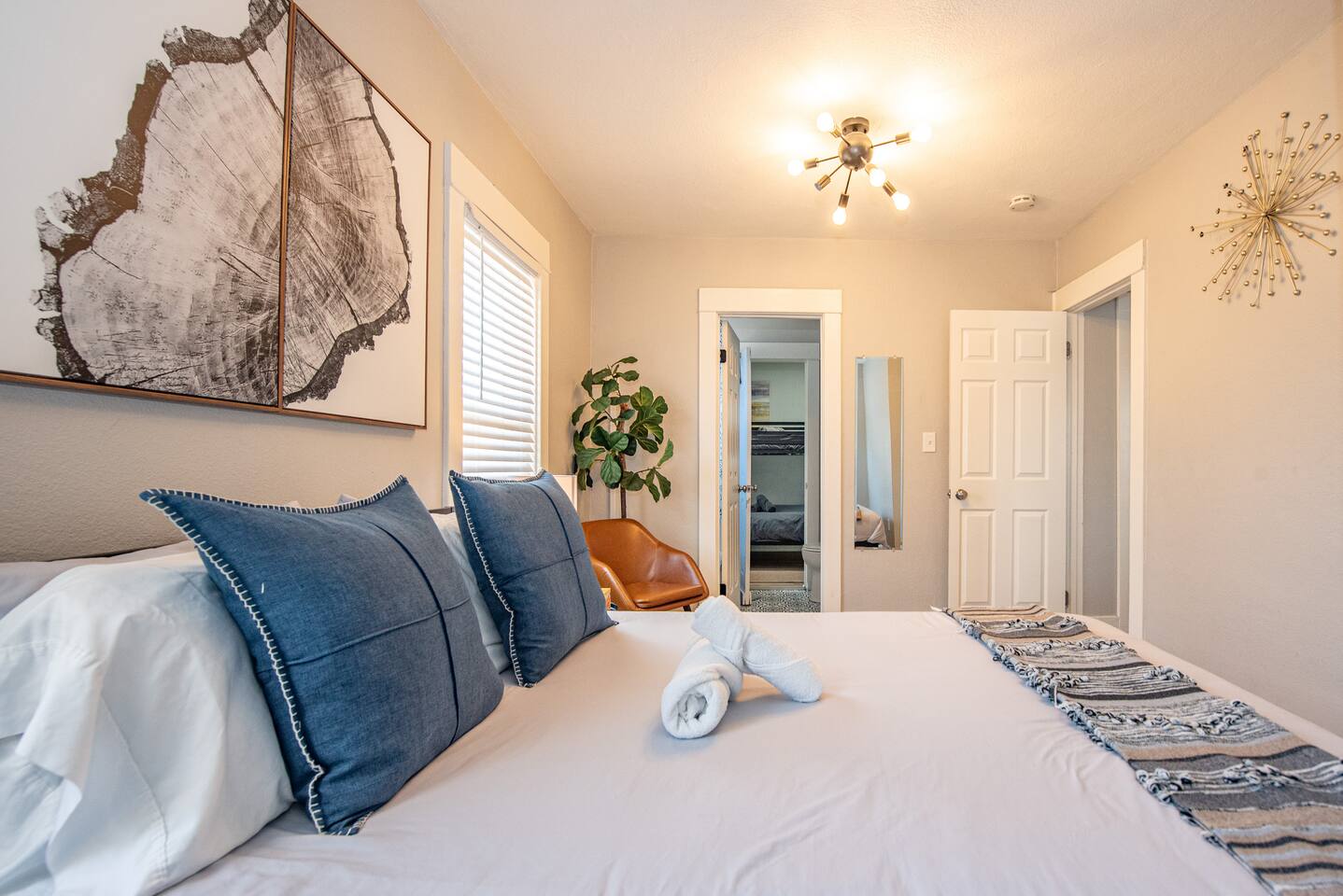 Discover convenience and charm in this centrally located, private retreat. As the "Main House," it exudes coziness and offers all the comforts of home—a full kitchen, laundry, a shared Jack & Jill bathroom, TV, and a tranquil front yard space. Perfect for families of up to 4, including kids, it comes fully furnished with essential kitchen amenities. With dedicated alleyway parking & more, proximity to major attractions like SDSU, beaches, the zoo, & downtown, your ideal vacation awaits.