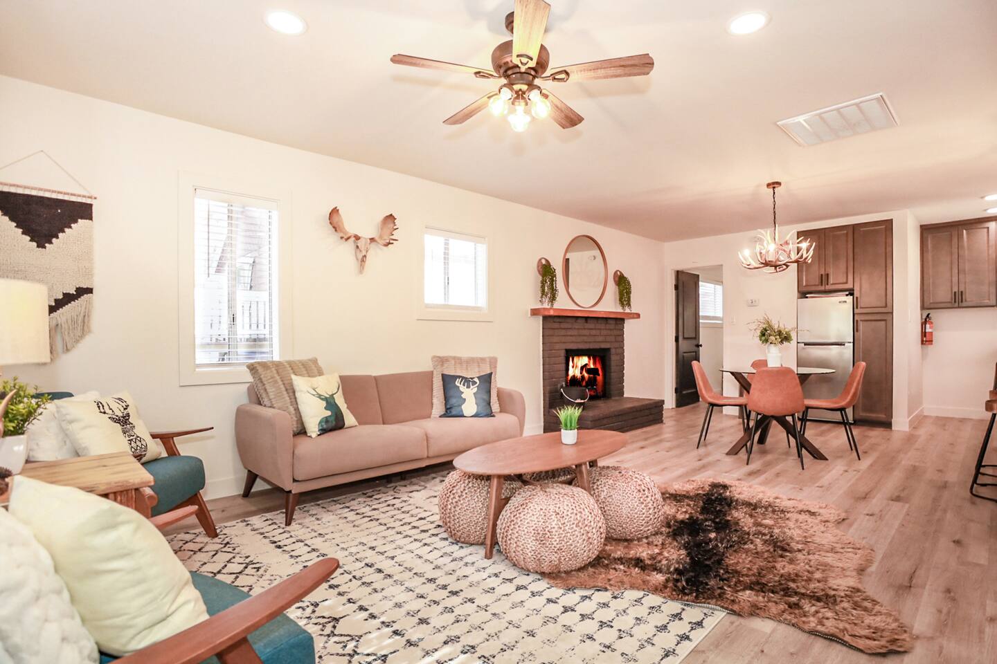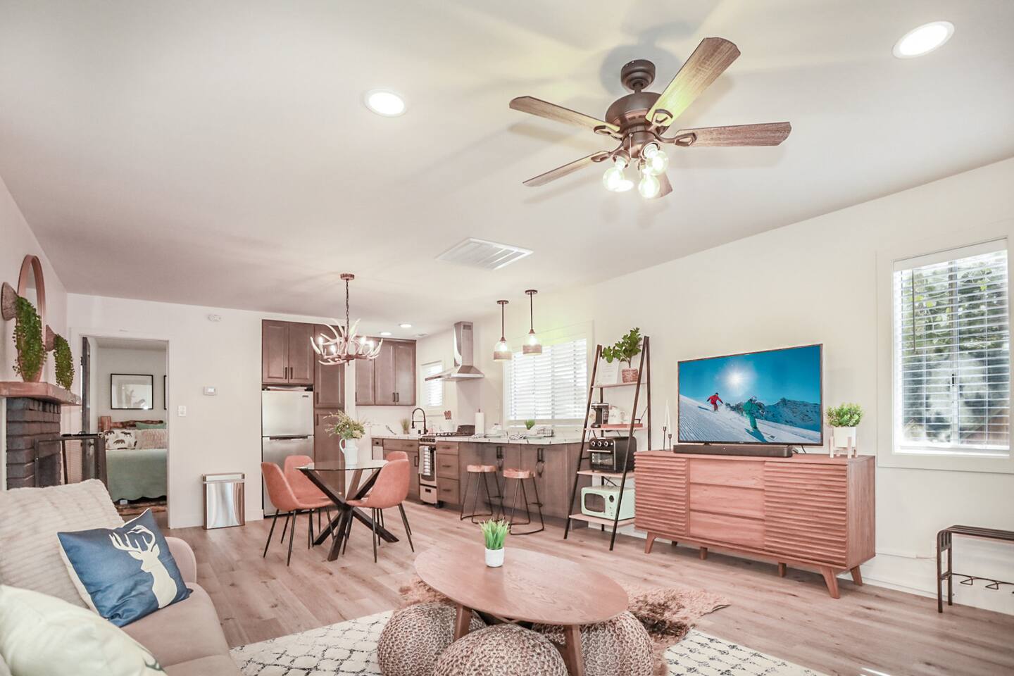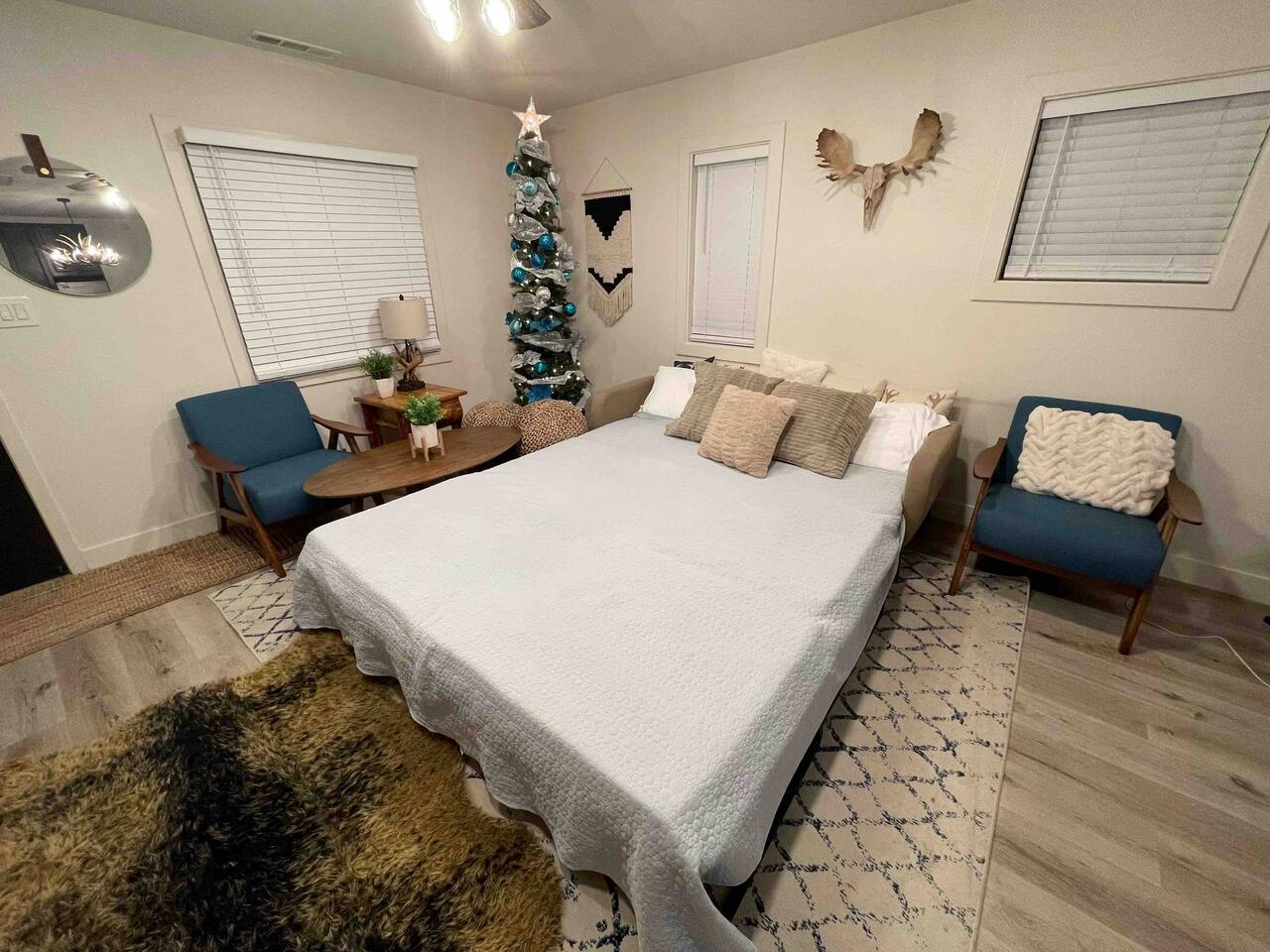 Gear up for the snow season and plan your adventures! A quick 9-minute drive on Big Bear Lake Blvd will take you to Snow Summit. Along the way, you'll find delightful breakfast spots, as well as plenty of coffee and tea cafes to fuel your day. No need to worry about packing food; Big Bear offers nearby grocery stores, and you can dine at the ski resorts during breaks. Rentals are readily available for your convenience. Our cozy space covers 600 sq feet and includes 1 bedroom and 1 bathroom. The bathroom connects directly to the bedroom, creating a master retreat ambiance. For added flexibility, the portable twin-size bed can be pushed together to make a large king-size bed. The home is equipped with central air, ensuring comfort on both cold and hot days. You can enjoy the ambiance of a gas fireplace, which accommodates regular wood and dura flame logs for your convenience. Please note that the maximum occupancy is limited to 3 guests, and in compliance with city regulations, we offer parking space for only 1 car in the driveway.