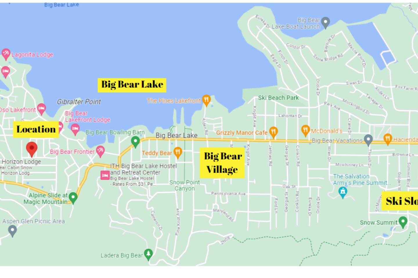 📍This cabin is the center of Big Bear Lake. Walking distance to Boulder Bay, 4 blocks from the lake, 1.4 miles to the village, & around the corner from the fun zone Alpine Slide at Magic Mountain. It's minutes from the Ski Slopes.
